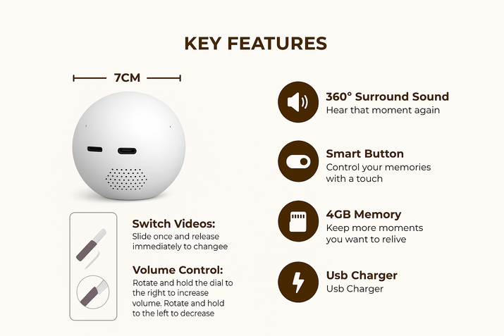 Enjoy – Once set, the sphere will automatically showcase your memories, from family photos to special milestones, all in one place.